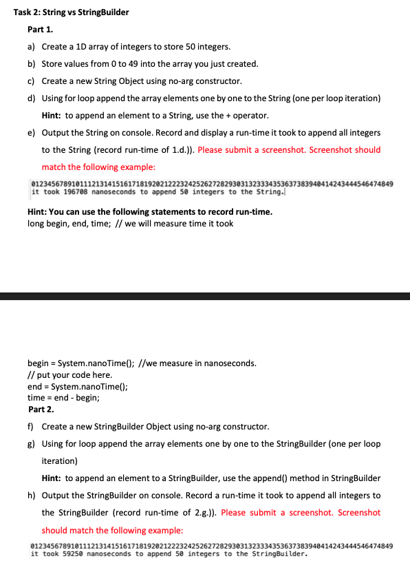 Solved Task 2 String vs StringBuilder Part 1. a) Create a